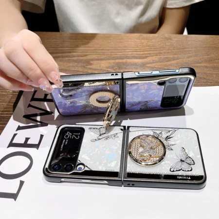 Coque de téléphone de luxe avec anneau papillon, étui pour Samsung Galaxy Z Flip 5 3 4 5G, miroir mignon brillant, résistant aux chocs £29.00 – £31.49Price range: £29.00 through £31.49