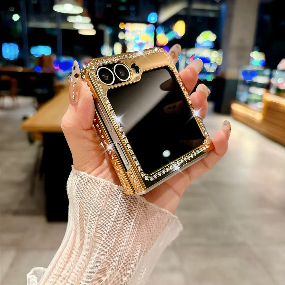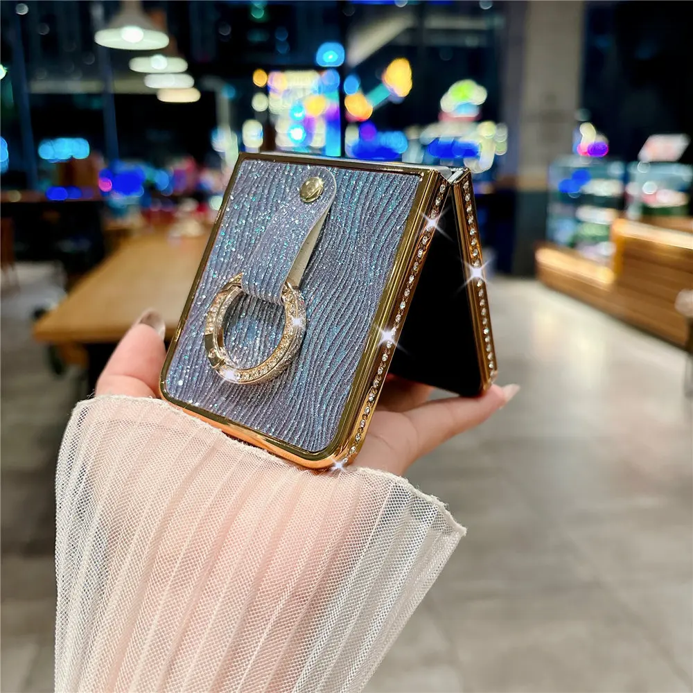 Anneau de support diamant étui pour Samsung Galaxy Z Flip 6 5 4 Zflip 5 Zflip 4 3 Bling galvanoplastie couverture