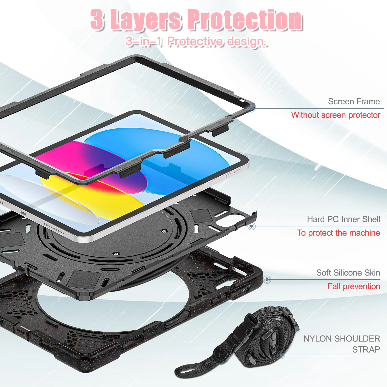 Armor Case Universal For iPad 2025 A16 11th 10.9 2022 10th Gen. A3354 A3355 A3356 A2757 A2777 A2696 Rotating Stand Hybrid Cover