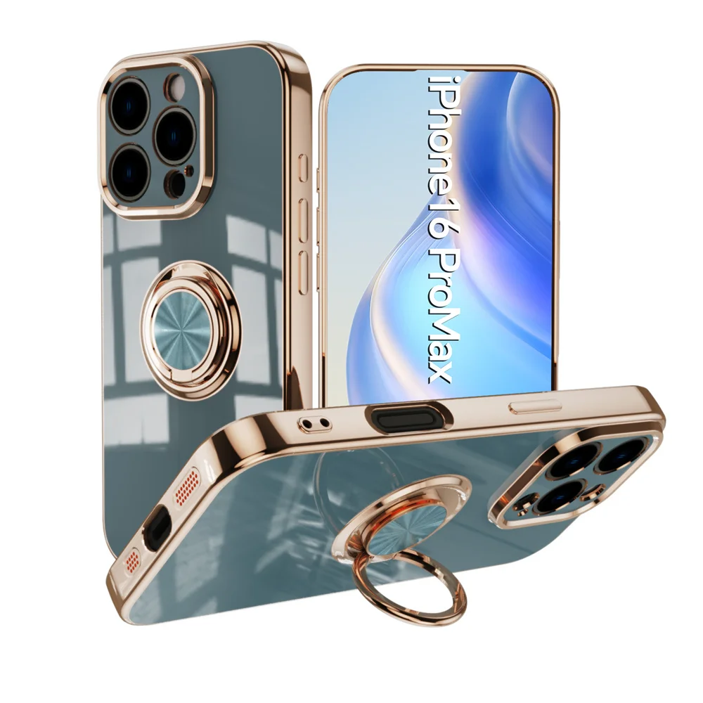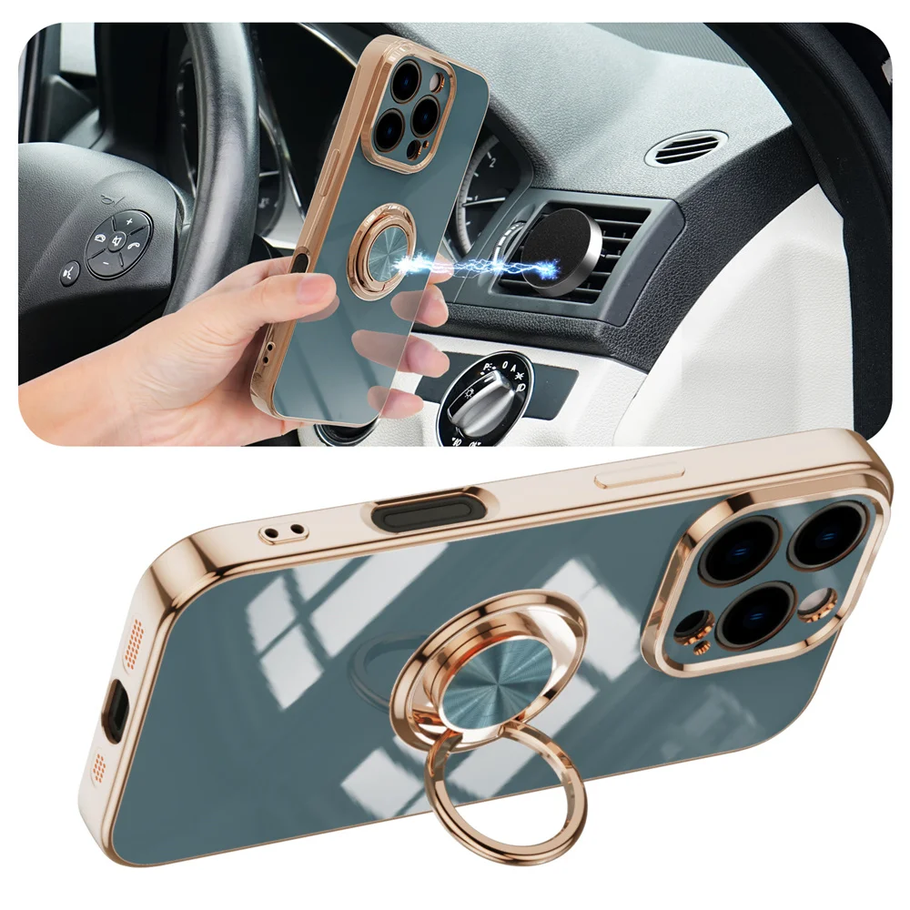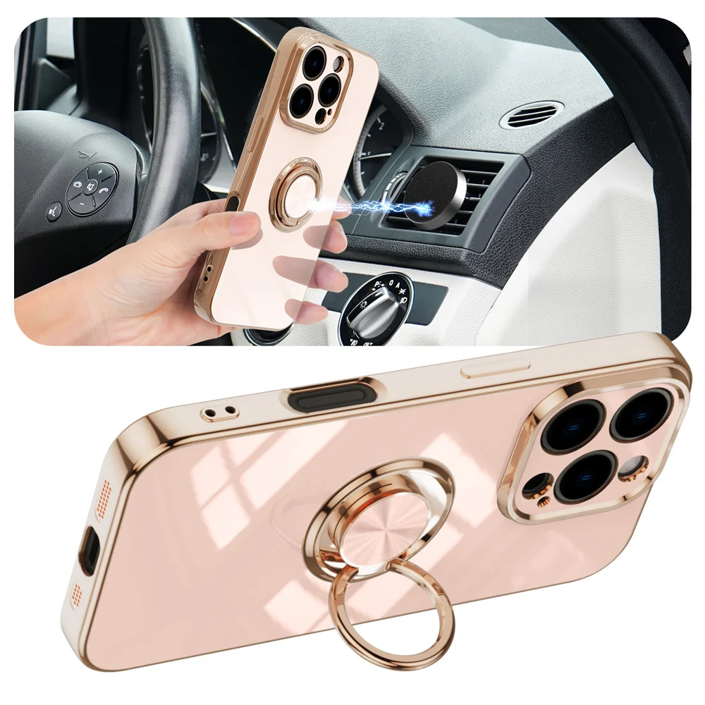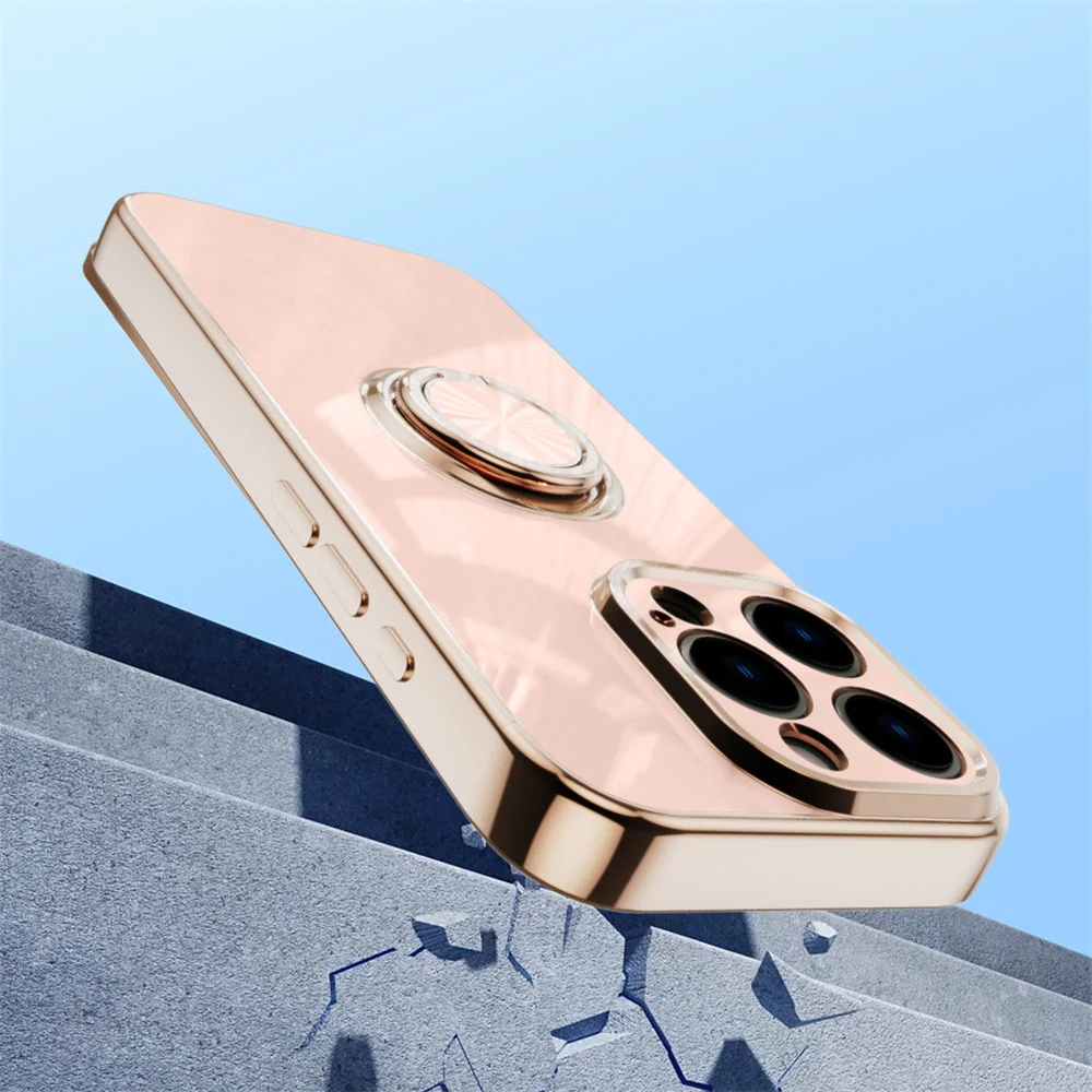 Coque de luxe avec anneau de doigt magnétique plaqué, étui antichoc pour iPhone 16 15 14 13 11 12 Pro Max 15 Plus avec support métallique