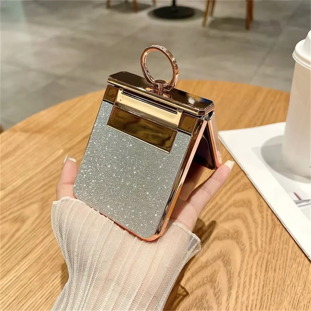 Étui avec support d’anneau à paillettes pour Samsung Galaxy Z Flip 6 5 4 3 ZFlip flip4 Flip5, support de placage dégradé de diamant scintillant