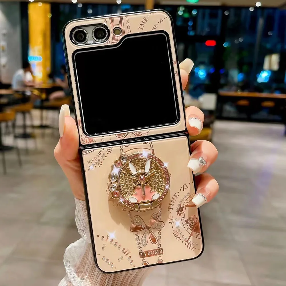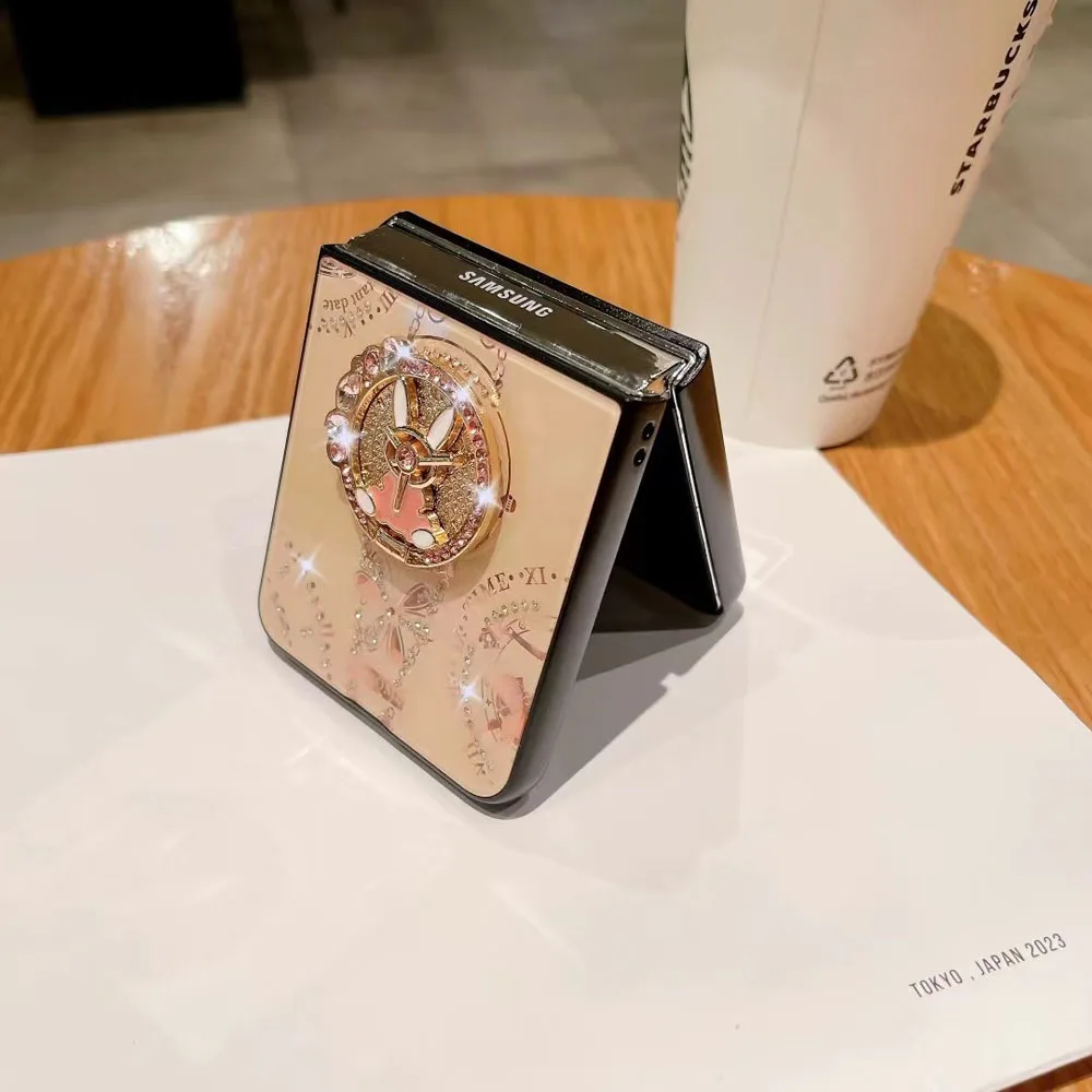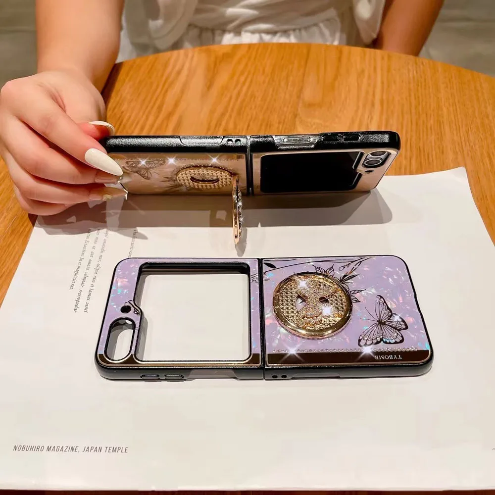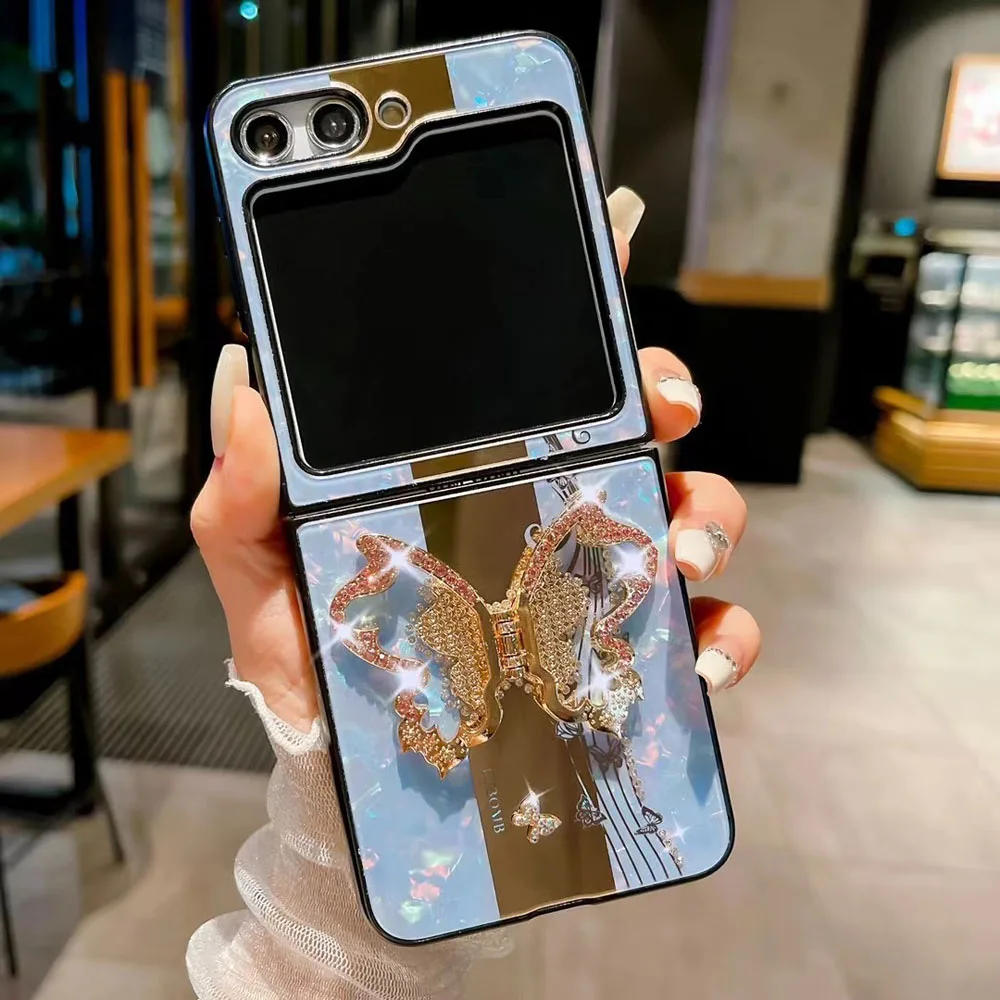 Coque de téléphone de luxe avec anneau papillon, étui pour Samsung Galaxy Z Flip 5 3 4 5G, miroir mignon brillant, résistant aux chocs