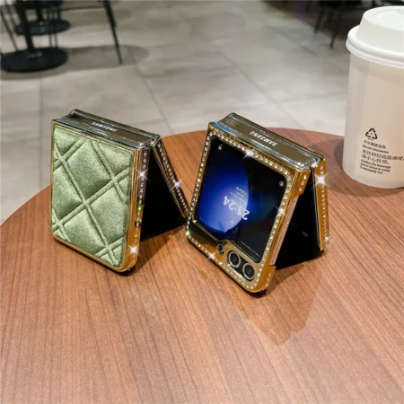 Coque de téléphone magnétique en cuir imprimé léopard, paillettes scintillantes, strass, chaîne à main, dragonne pour Samsung Galaxy Z Flip 6 5 4 3 5G