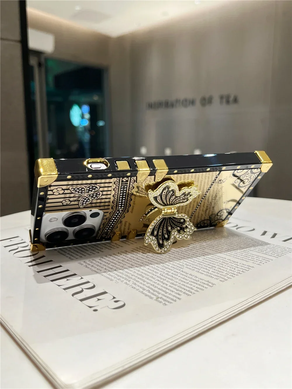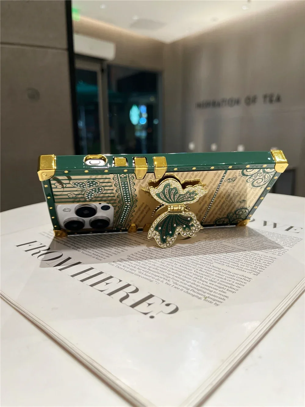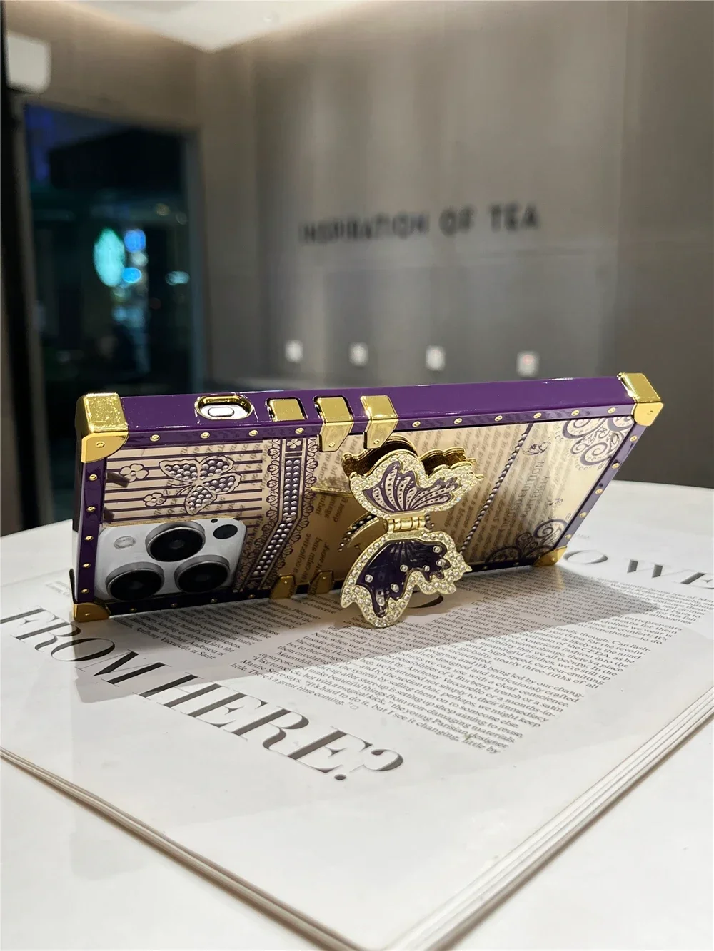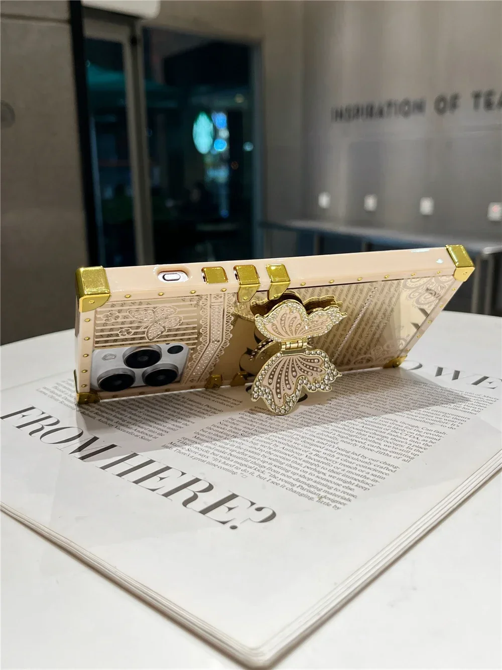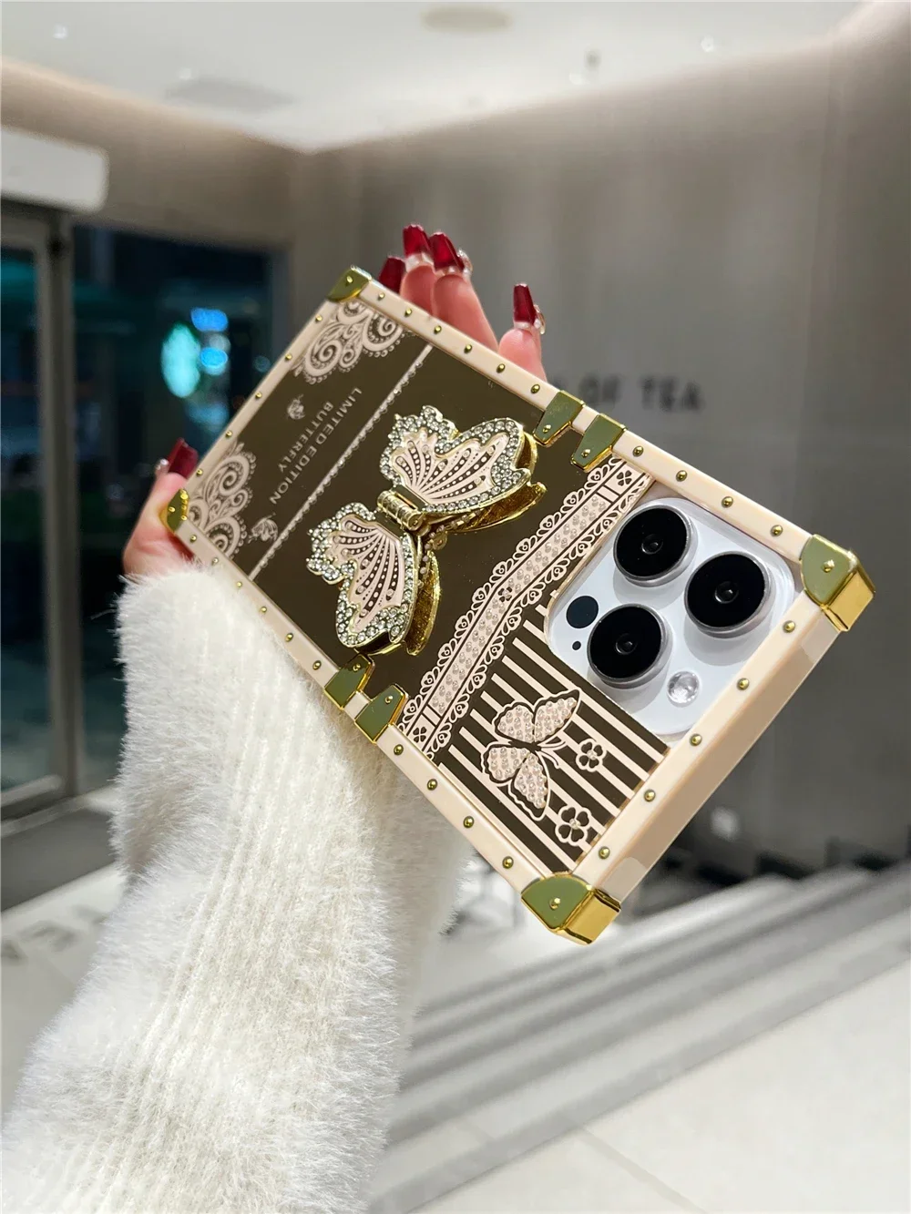 Coque de téléphone miroir mignonne pour iPhone 16 15 14 Plus 13 12 11 Pro Max, housse de support pliable de luxe à paillettes papillon