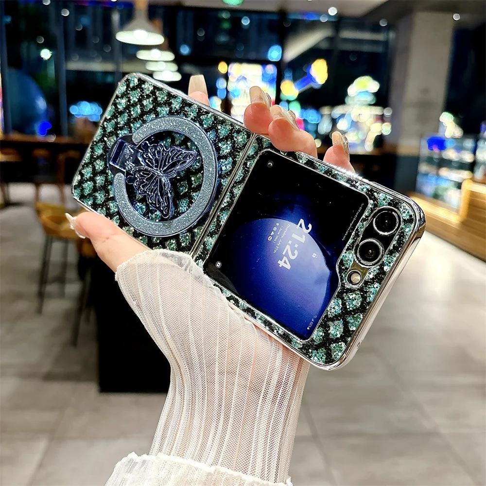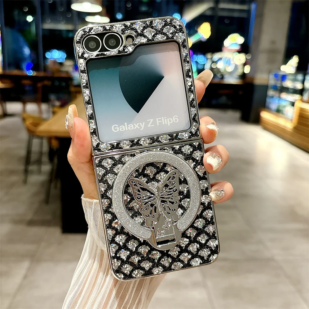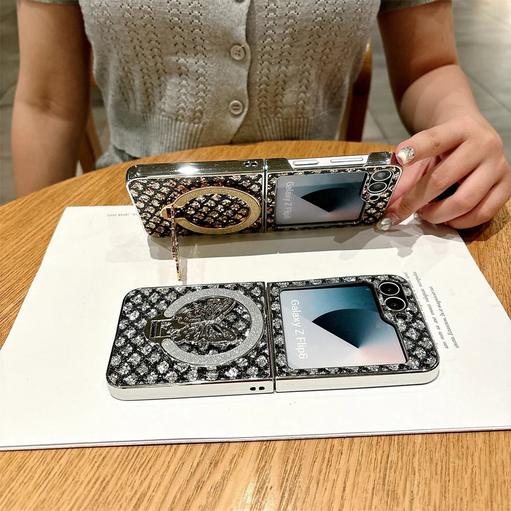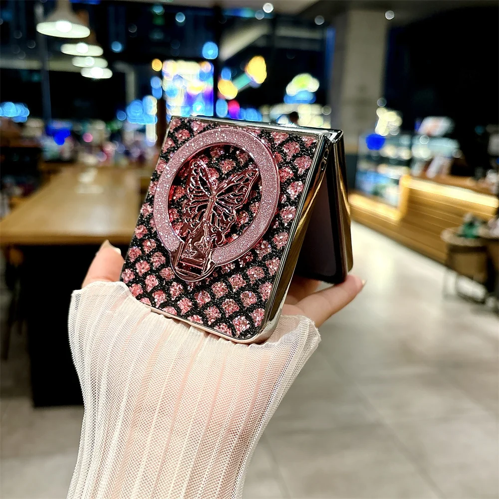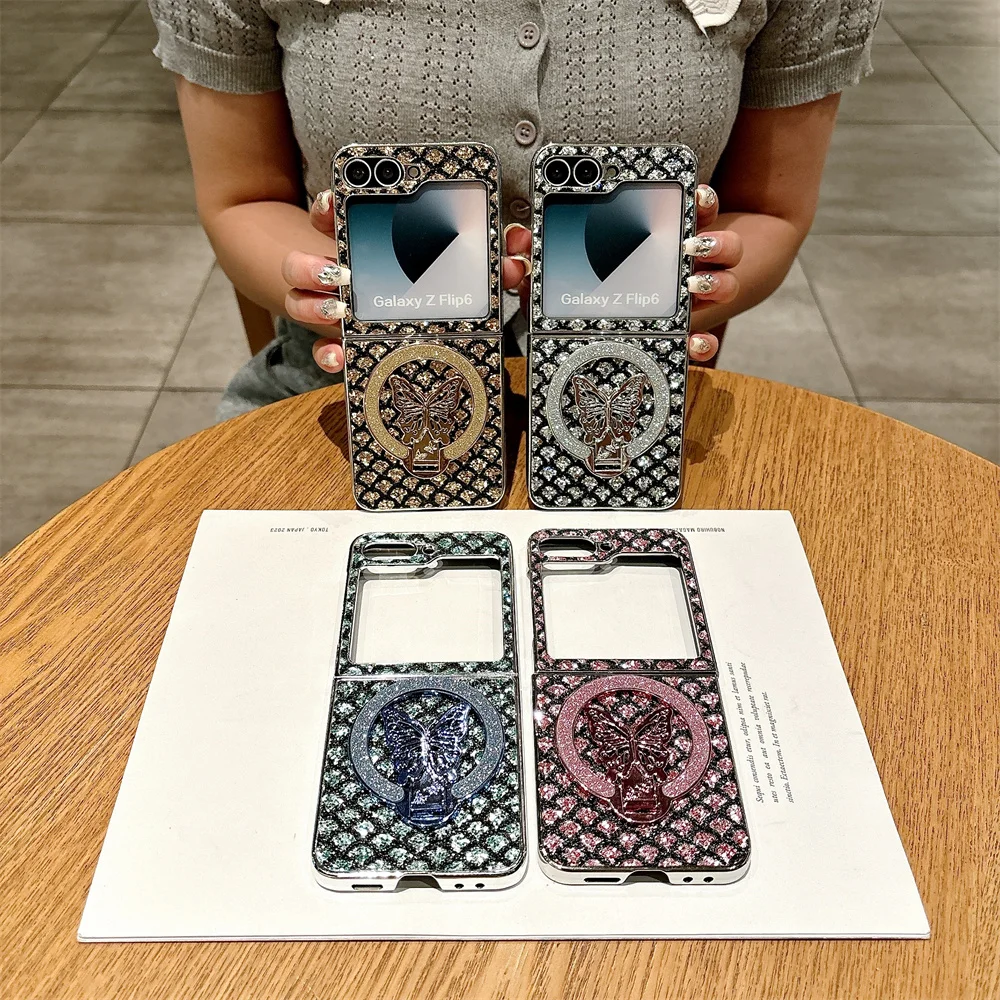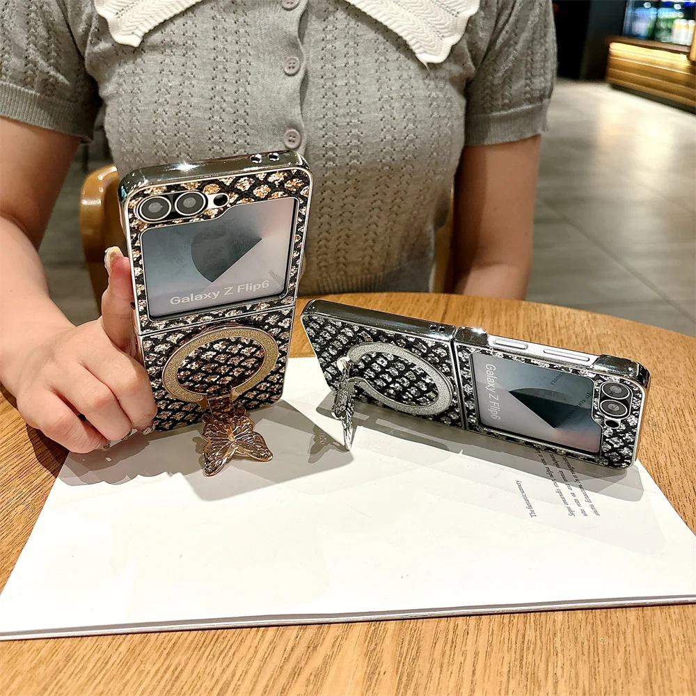 Étui de téléphone magnétique en cuir galvanisé, housse de protection, papillon, Samsung Z Flip 6, 5, 4, 3 Flip6, Flip5, Flip4, Flip3