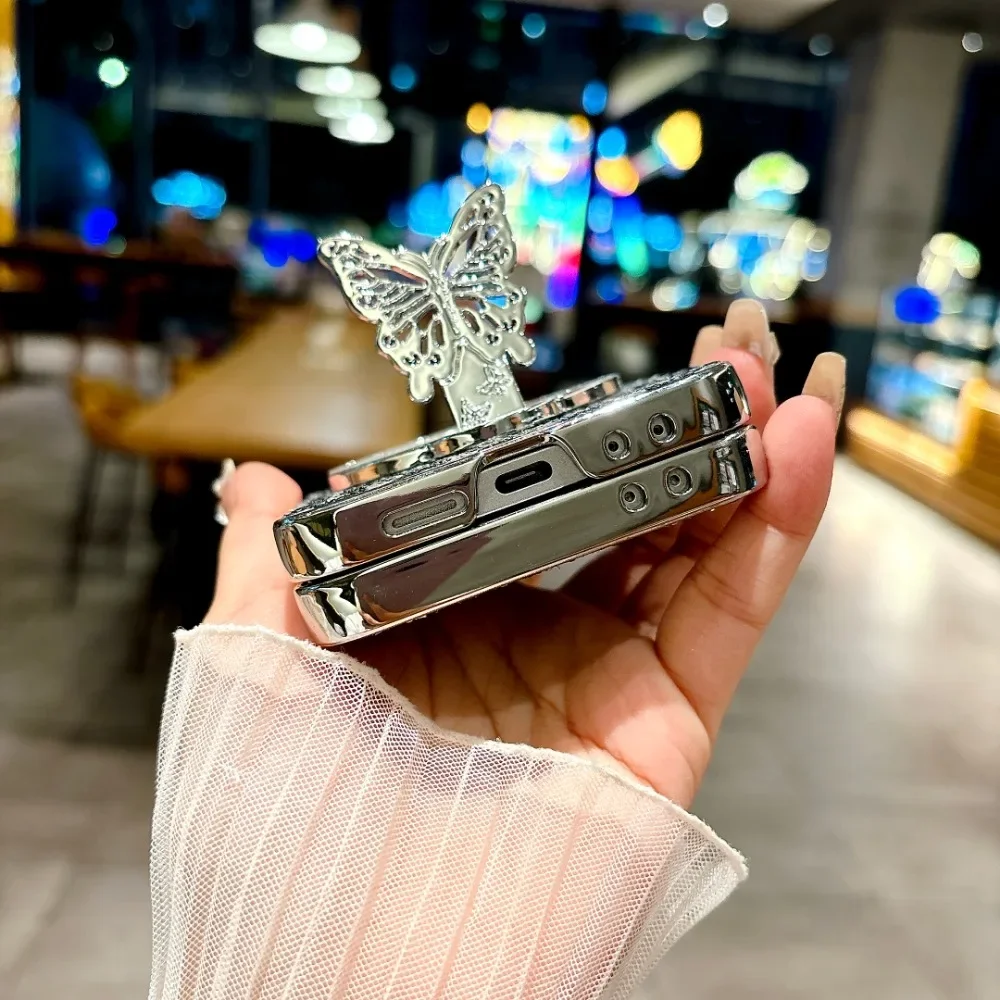 Étui de téléphone magnétique en cuir galvanisé, housse de protection, papillon, Samsung Z Flip 6, 5, 4, 3 Flip6, Flip5, Flip4, Flip3