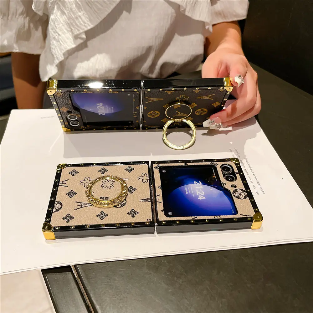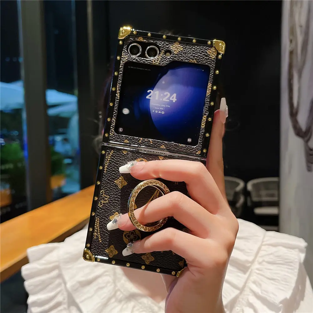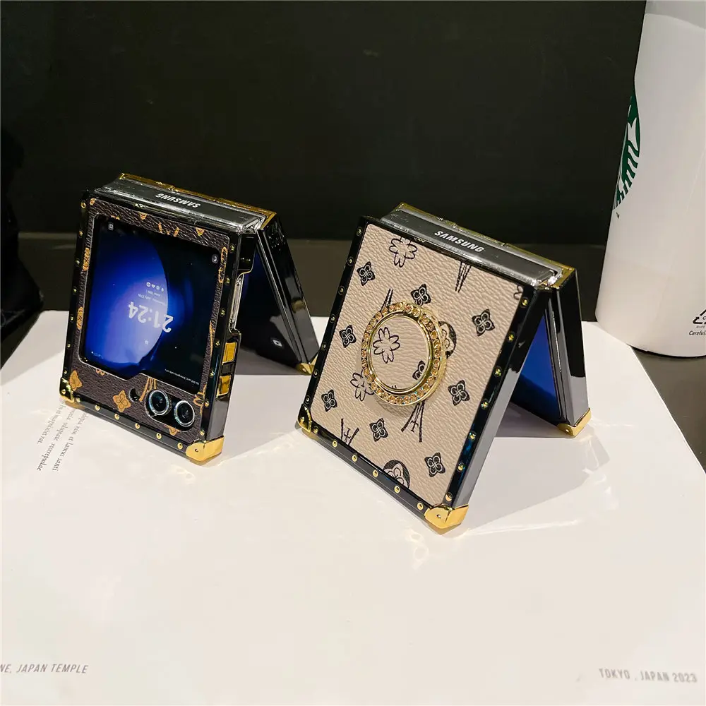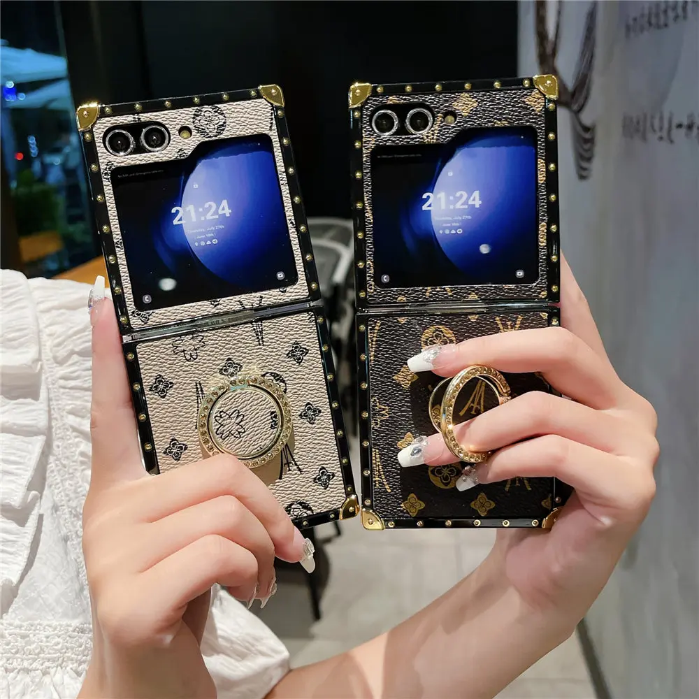 Étui en cuir avec support de bague Vintage, étui antichoc pour Samsung Galaxy Z Flip 6