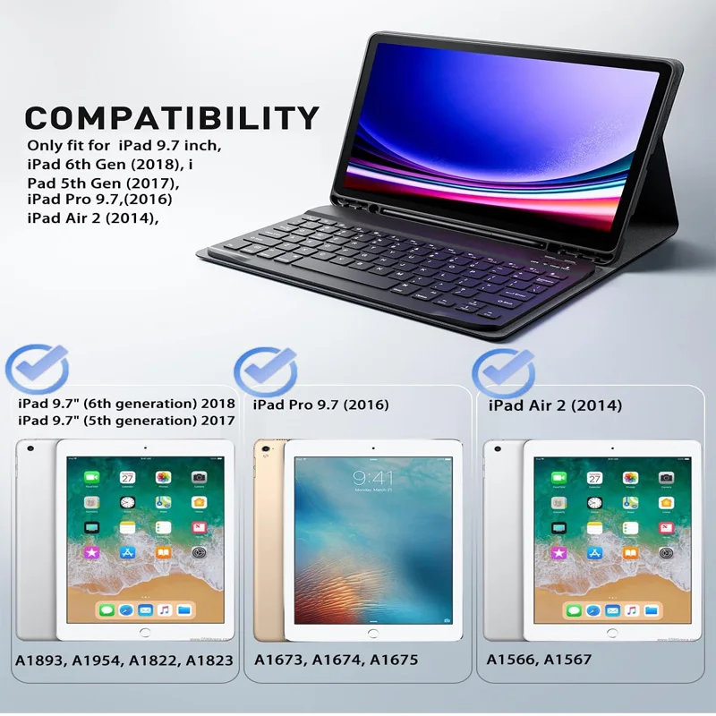 For iPad 5th 6th Generation 9.7 Inch Case with Keyboard,Detachable Wireless Keyboard+Tablet Cover iPad air 1 2 9.7 pro 9.7 Funda