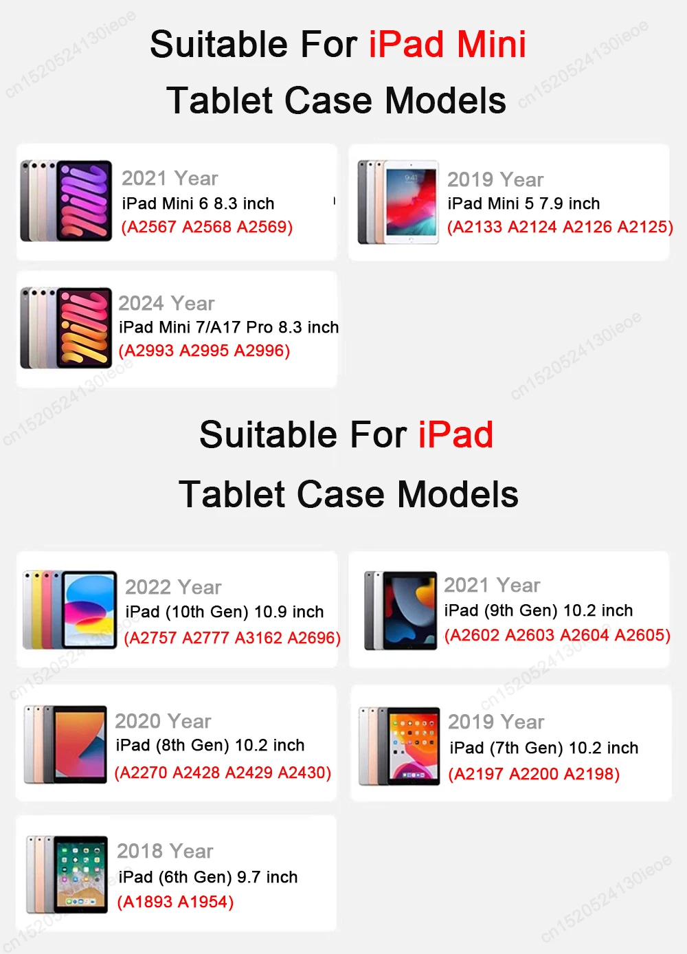 - Model Compatibility: ipad 8th(2020),iPad 6th(2018),iPad Pro 11″ 3rd(2021),iPad Pro 9.7″ (2016),iPad Air 4th(2020),iPad Air 2nd(2014),iPad Air 1st(2013),ipad mini 6th,iPad Pro 11″ 2nd(2020),iPad Pro 11″ 1st(2018),iPad 10th(2022),iPad 9th(2021),iPad 2nd(2011),iPad 3rd(2012),iPad Air 3rd(2019),iPad 4th(2012),Ipad Mini 2nd,iPad mini 1st,iPad 5th(2017),iPad Air 5th(2022),iPad mini 4th,iPad Pro 11″ 4th(2022),iPad 7th(2019),iPad mini 5th,iPad Pro 10.5″ (2016),iPad mini 3rd