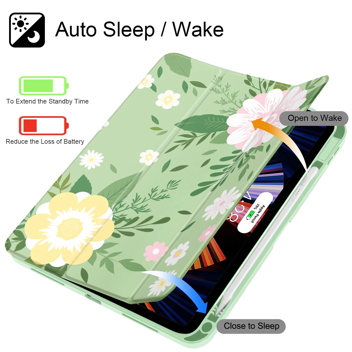Spring Flower Green Print Case For iPad 2025 M4 A16 11th 10.9inch 2022 10th Air4 Air5 Air11 M2 M3 Pro13 2024 Pro 12.9inch case
